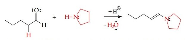 Amina primer beraksi dengan aldehid menghasilkan enamina N-tersubstitusi.