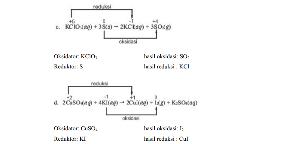 Tentukan oksidator, reduktor, hasil oksidasi, dan hasil reduksi pada masing-masing reaksi berikut!