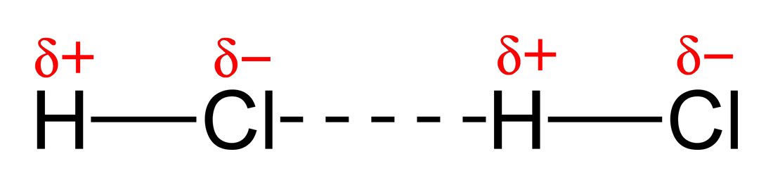 - Dipol-Dipol adalah gaya tarik menarik antara molekul polar dengan molekul polar. Contohnya, interaksi antar molekul HCl.
