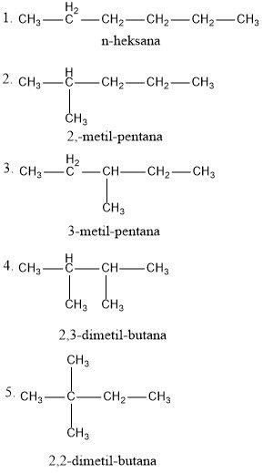a. Alkana: Isomer rantai dari C6H14