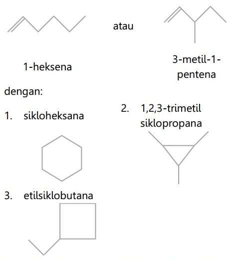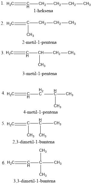 b. Alkena: Isomer rantai dari C6H12