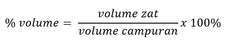Satuan persen volume digunakan untuk menyatakan konsentrasi zat yang terbentuk dari dua wujud zat cair. Persen volume dirumuskan sebagai berikut.