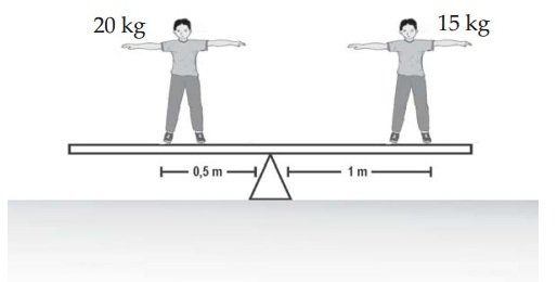 Salah satu ujung sebuah jungkat – jungkit dinaiki anak yang massanya 15 kg. Ujung satunya dinaiki anak yang massanya 20 kg. Jarak masing – masing anak dari titik tumpu adalah 1 m dan 0,5 m. Berapa torsi masing – masing dan berapa torsi totalnya? Kemana arah putaran batang? (g = 10  m/s2)