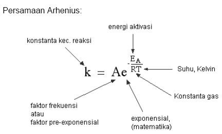 Arrhenius telah menemukan hungan antara energi aktivasi dengan tetapan laju reaksi. Persamaan Arrhenius tersebut secara matematika dapat dituliskan sebagai berikut.