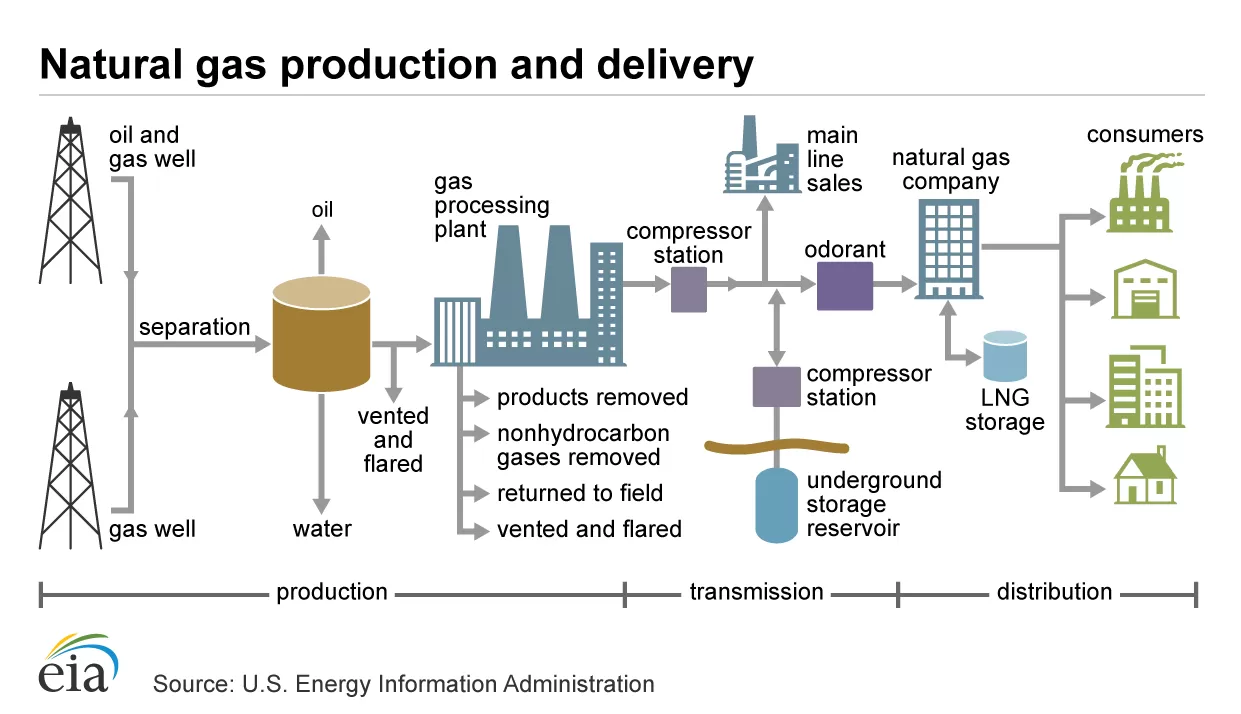 Sama seperti minyak bumi, gas alam juga terbentuk dari organisme laut dan mikroorganisme yang terkubur dan mengalami transformasi kimia selama jutaan tahun. Gas alam terutama terdiri dari metana dan digunakan sebagai sumber energi untuk memasok listrik, pemanas, dan bahan bakar kendaraan.