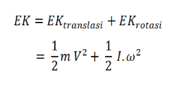 Ketika suatu benda melakukan kerak rotasi dan translasi secara bersamaan (atau bahasa gaulnya “menggelinding”), maka total energi kinetik benda menggelinding tersebut adalah penjumlahan energi kinetik translasi dan rotasinya.