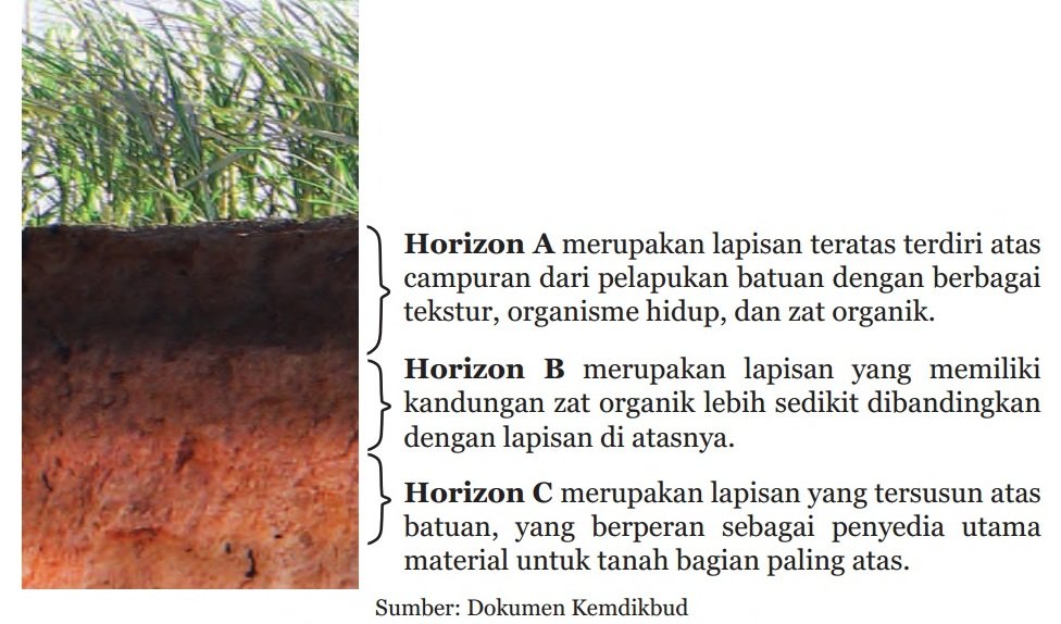 Tanah terdiri atas beberapa macam lapisan. Lapisan-lapisan tanah ini kaya akan berbagai macam bahan. Tanah juga merupakan peleburan dari berbagai macam bahan baik berupa batuan maupun bahan-bahan organik.