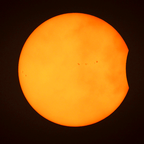 Gerhana Matahari terjadi ketika bulan berada pada fase bulan baru dan ketika bulan berada di dekat salah satu simpul orbitnya serta posisi Bulan berada di antara bumi dan matahari, akibatnya bayang-bayang bulan menutupi sebagian wilayah bumi, artinya cahaya matahari yang masuk ke bumi pada siang hari terhalang oleh Bulan. Lama waktu geraha matahari sekitar 7 menit.