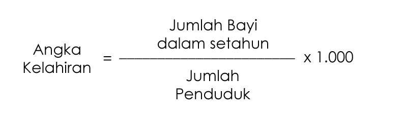 Angka kelahiran = (jumlah bayi dalam setahun/jumlah penduduk) x 1.000 = (800.000/25.000.000) x 1.000 = 32