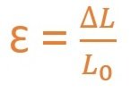 Sedangkan regangan adalah perbandingan antara pertambahan panjang L terhadap panjang mula – mula (L0). Regangan dinotasikan dengan Ɛ dan tidak mempunyai satuan. Secara matematika konsep regangan dituliskan dengan rumus sebagai berikut: