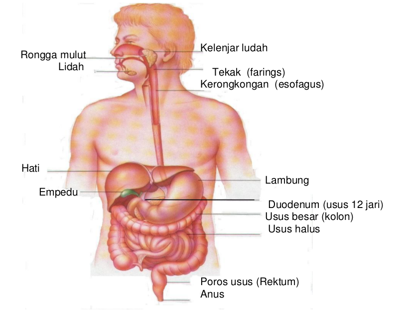 - Sistem pencernaan yang tersusun atas organ mulut, lambung, usus.