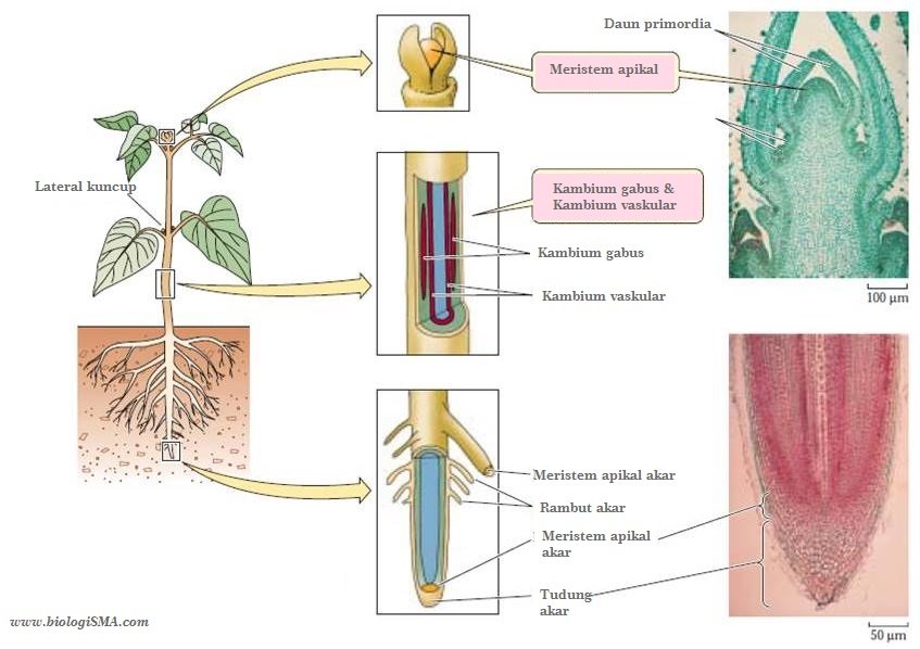 Jaringan meristem berfungsi sebagai penyokong pada pertumbuhan tumbuhan yang menyebabkan tumbuhan mengalami pertambahan tinggi dan volume