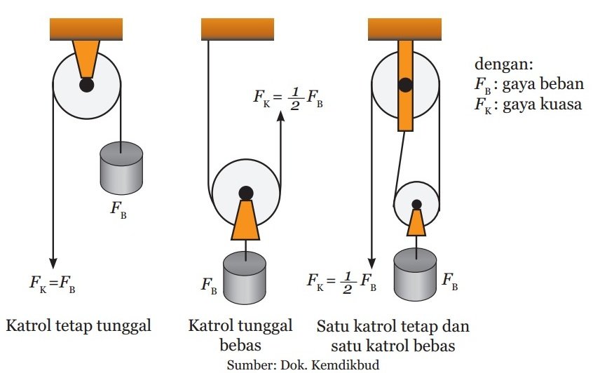 - Katrol majemuk = jumlah tali yang menyokong berat benda