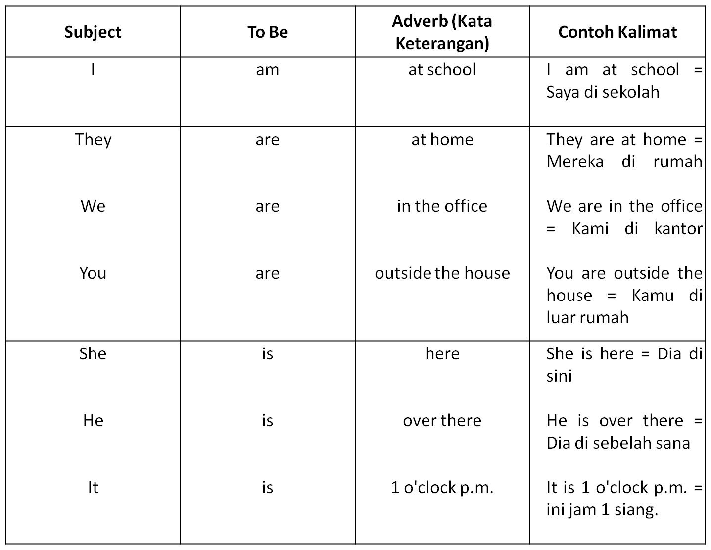 Untuk menjawab pertanyaan-pertanyaan di atas, kita akan mempelajari rumus to be dalam bahasa inggris. Rumus to be ini akan menjawab pertanyan-pertanyaan di atas.