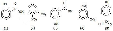Rumus struktur senyawa o-hidroksibenzoat dan m-nitrotoluena berturut-turut ditunjukkan oleh gambar ….