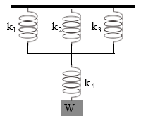 Beban w yang digantung menyebabkan sistem pegas mengalami pertambahan panjang secara keseluruhan sebesar 5 cm. Berat beban w adalah …