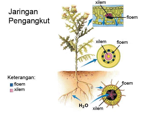 Jaringan pengangkut terdiri atas dua macam, yaitu xilem dan floem.