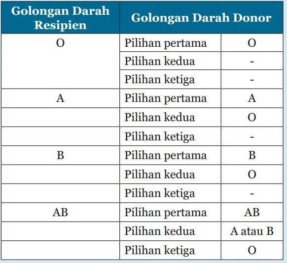Kita harus mengetahui golongan darah karena golongan darah sangat penting pada proses transfusi darah. Transfusi darah adalah proses pemindahan darah dari donor (pemberi) ke resipien (penerima).
