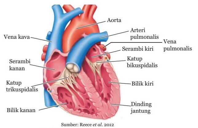Jantung mempunyai bentuk seperti kerucut tumpul, dengan ukuran sebesar kepalan tangan, dan panjangnya kurang lebih 12 cm dengan lebar 9 cm. Jantung manusia terdiri dari empat ruangan yaitu bilik kanan, bilik kiri, serambi kanan, dan serambi kiri.