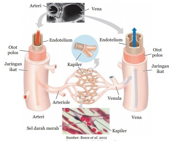 Pembuluh darah dibedakan menjadi tiga macam, yaitu pembuluh nadi (arteri) pembuluh balik (vena) dan pembuluh kapiler.