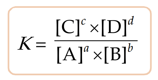 Di mana [A], [B], [C], dan [D] adalah konsentrasi masing-masing zat dalam kesetimbangan. Jika nilai K besar, maka pada kesetimbangan, produk cenderung lebih banyak. Sebaliknya, jika nilai K kecil, maka reaktan cenderung lebih banyak pada kesetimbangan.